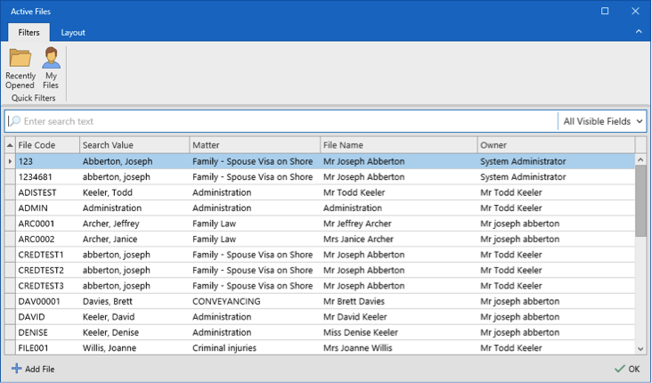 When you type, the matches will be highlighted in yellow. There are also some useful tools in various lookups, like showing ‘My Files’ when looking for a matter, or only listing Expense Ledgers when posting General Withdrawals.